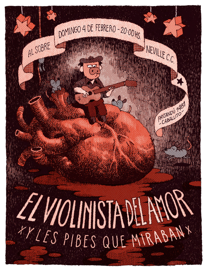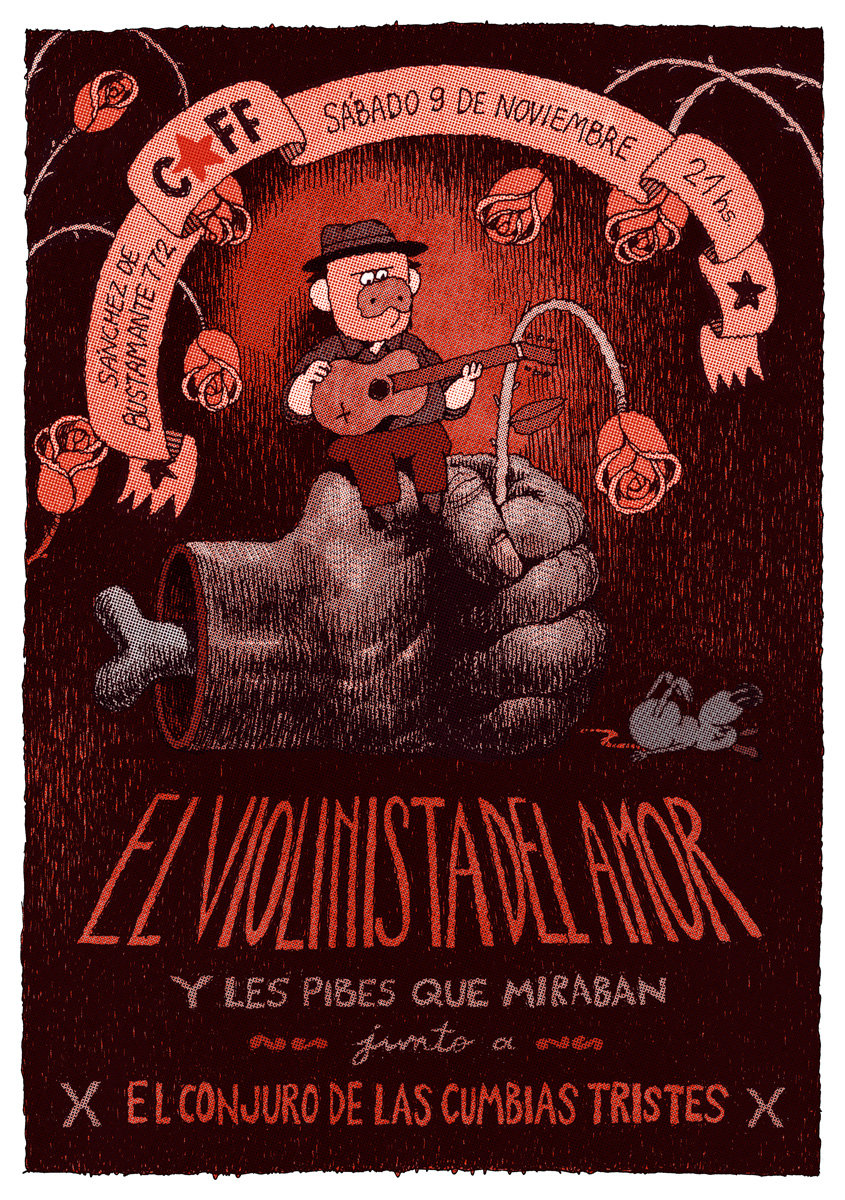 - Gig poster for argentinian bands El Violinista del Amor, Bichos and Hombre Amable.