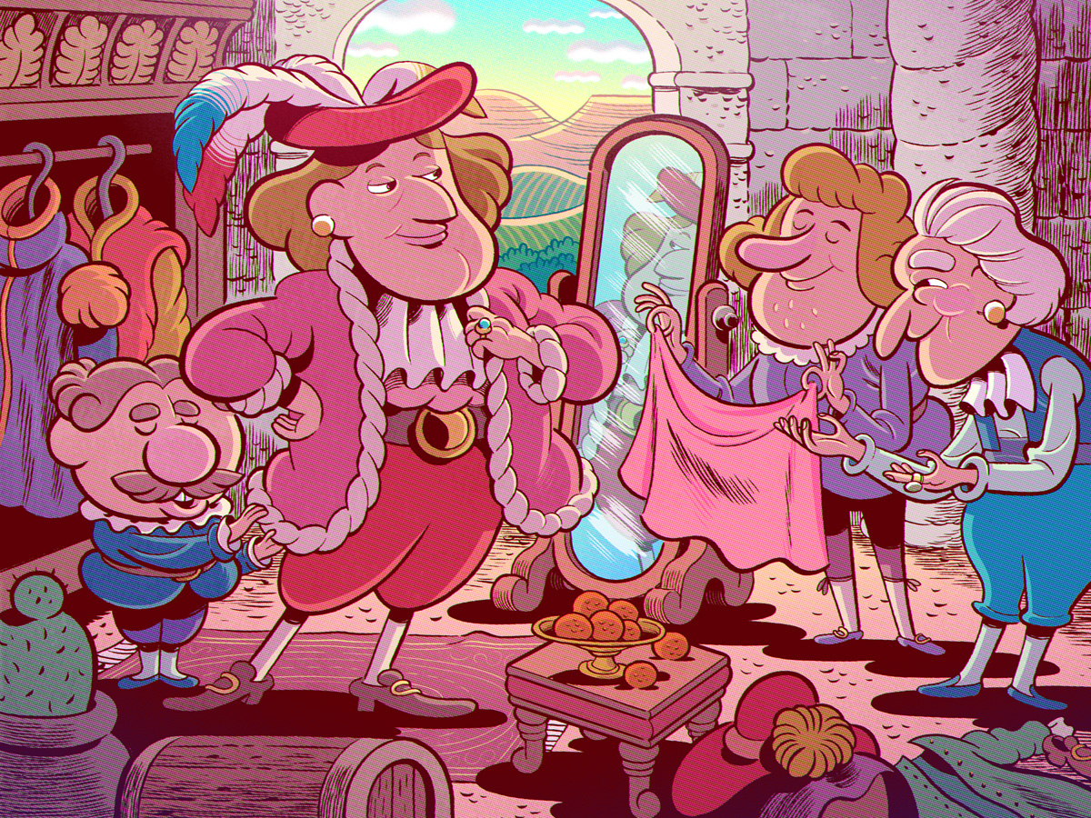 Ilustraciones para el cuento "El traje nuevo del Emperador" para