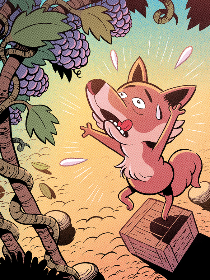 la fábula "La zorra y las uvas" de Esopo, para