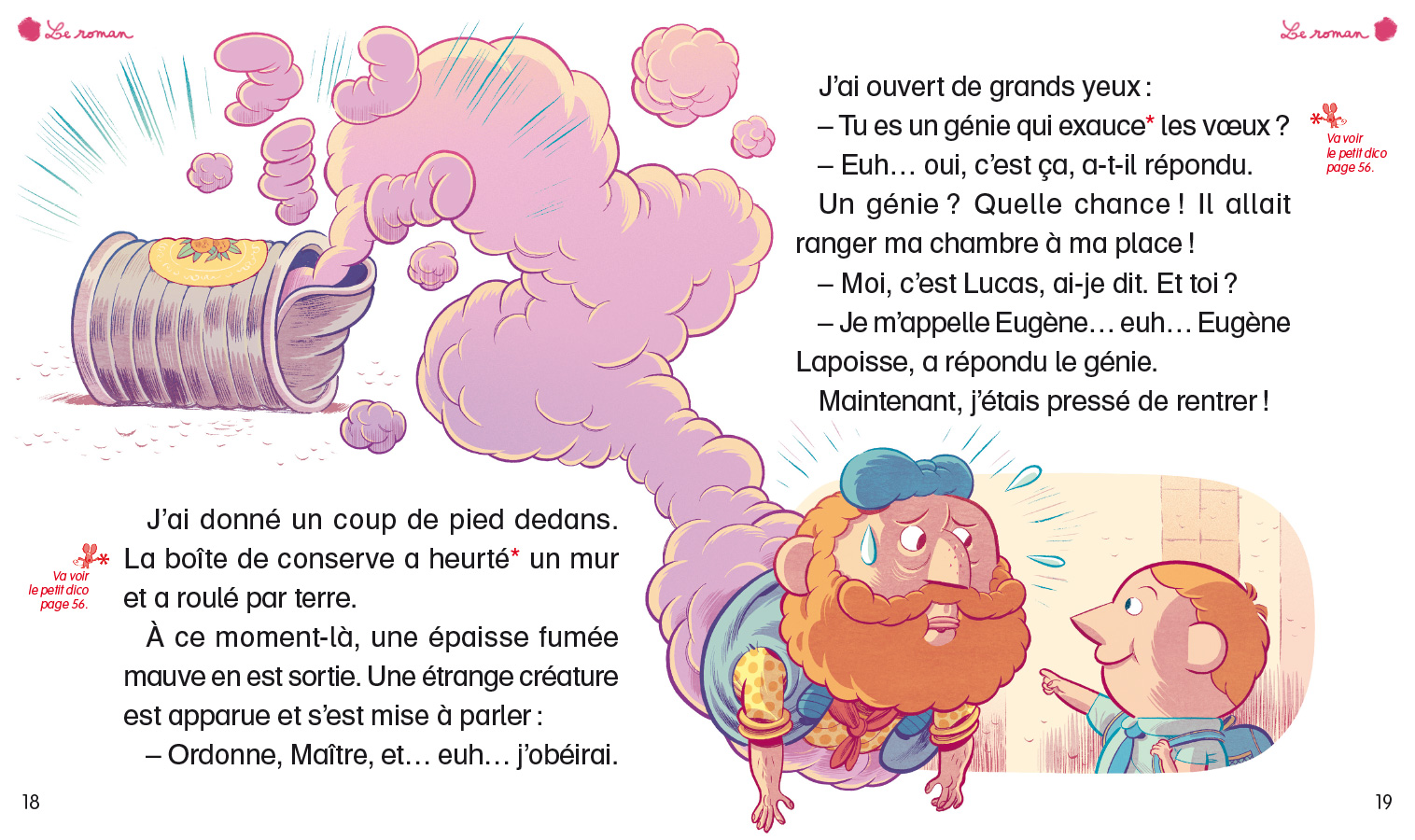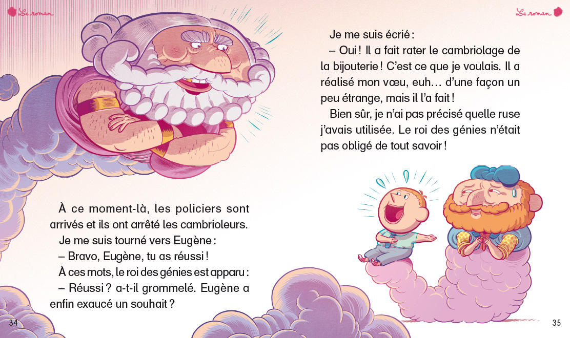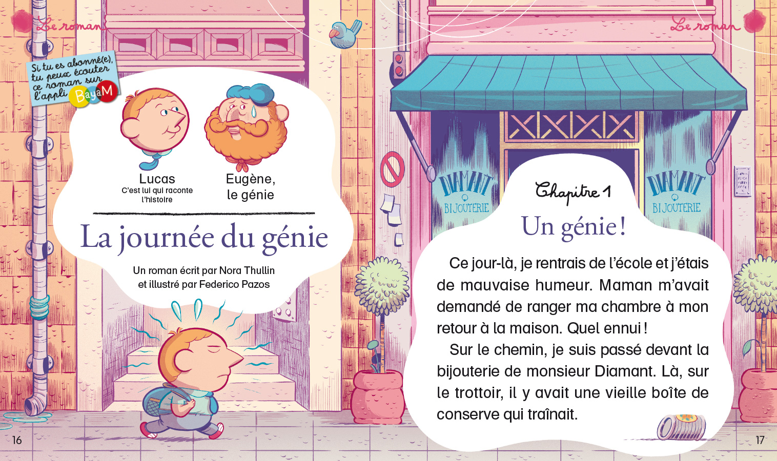 Ilustraciones para el cuento "La journée du génie", escrito por Nora Thullin, y portada, para la revista